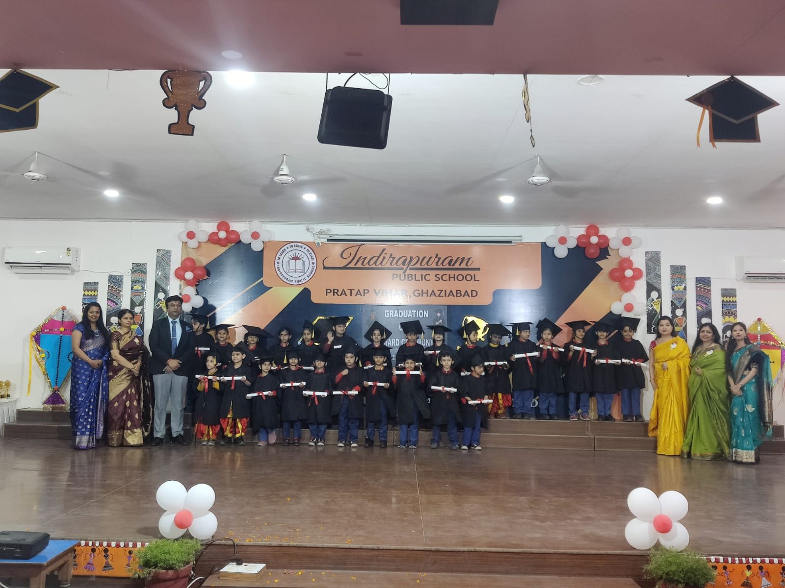 गाजियाबाद। इंदिरापुरम पब्लिक स्कूल प्रताप विहार में शनिवार के पूर्व प्राथमिक कक्षाओं के बच्चों के लिए दीक्षांत एवं पुरस्कार वितरण समारोह का आयोजन किया गया। समारोह का आकर्षण रंगारंग कार्यक्रम रहे। गणेश वंदना के बाद बच्चों ने भारत के विभिन्न प्रांतों को एकता के सूत्र में बॉंधने वाली भारत की प्रसिद्ध रेल वंदेभारत की प्रस्तुति से सभी को मंत्रमुग्ध कर दिया। प्रधानाचार्य मधुकर प्रिय ने वार्षिक रिपोर्ट पेश की। उप प्रधानाचार्या कल्पना सीज़ोए प्रधानाध्यापिका श्रद्धा सिंह ने सचिव प्रियंक जोशीए निदेशक पंकज जोशीए उपसचिव अमित सिन्हा व प्रबंधन समिति सदस्य उमा सूरी सिन्हा को सम्मानित किया। रेखा बिष्ट ने सभी का धन्यवाद किया।
