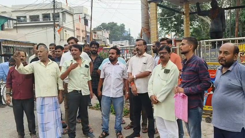 रविवार देर शाम को कुछ लोगों की संख्या में कारोबारी सुभाष तिराहे पर इकट्ठा हुए और जमकर नारेबाज़ी की।
